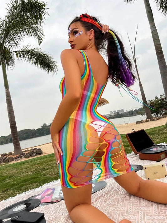 Vestido en Malla Arcoiris Sin Mangas
