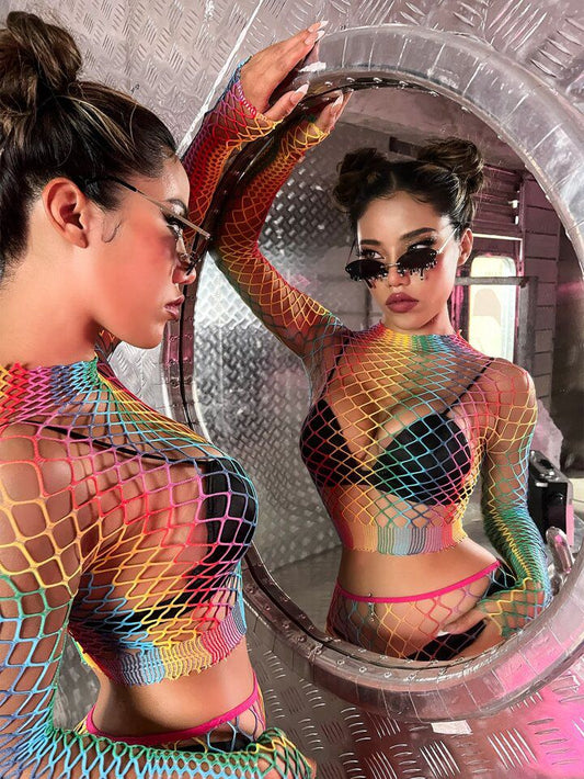 Traje 2 Piezas Malla Arcoiris